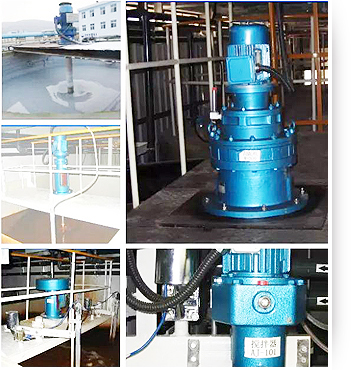 水處理攪拌的目的主要是溶藥、混凝、絮凝,混合,防止沉淀。主要罐體有加藥箱,絮凝池,混凝池,反應箱,出水箱、沉淀池刮泥機,主要攪拌葉片形式有一般使用的攪拌器形式是有旋槳式ZCX,斜葉槳式(XJ、HJ),開啟渦輪式(XKK,MK,ZK),方柵式(FSS),耙壁攪拌器(PSA、PSB)等。